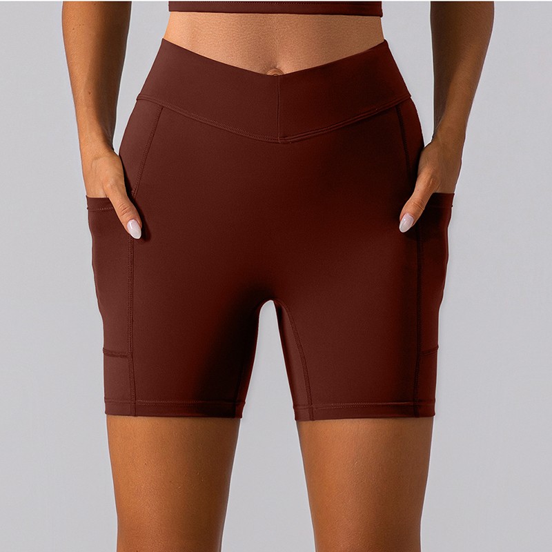 Grossistförsäljning High Elastic Fitness Sport löparshorts. Kvinna Push Up V Midja Baksida Pocket Yoga Shorts För Kvinnor. Du kan också skräddarsy dina egna bruna shorts för kvinnor efter dina specifika behov.